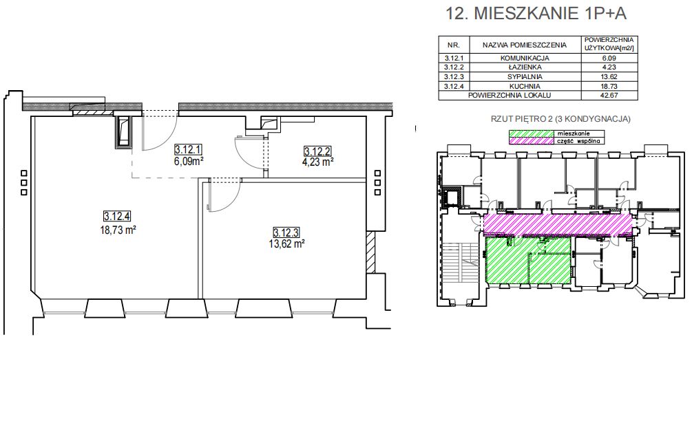 42 m2, pierwsze piętro, wys. 3.30m