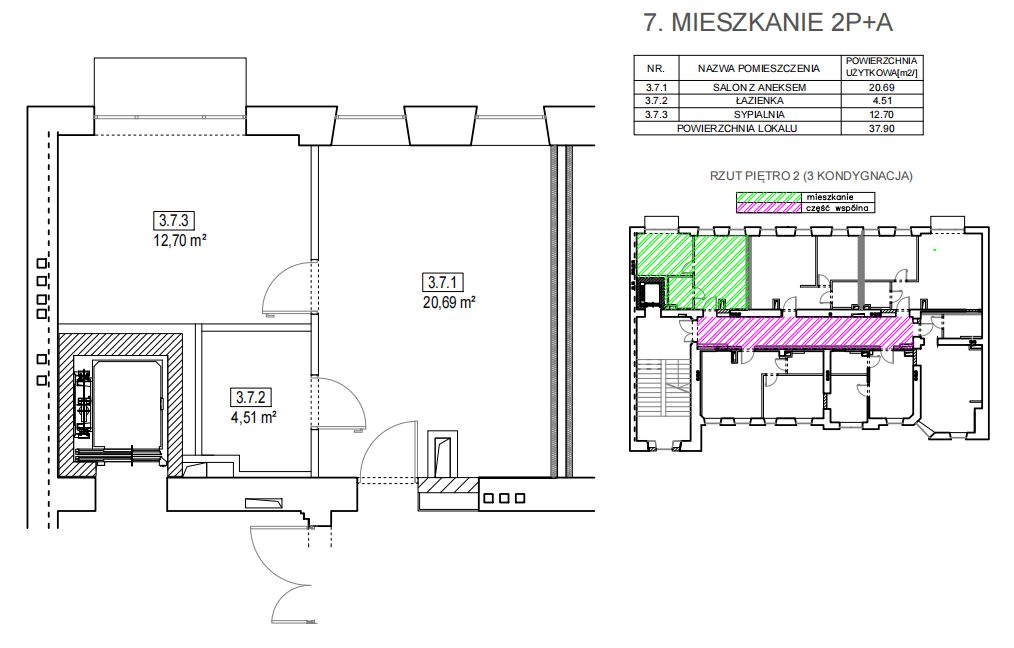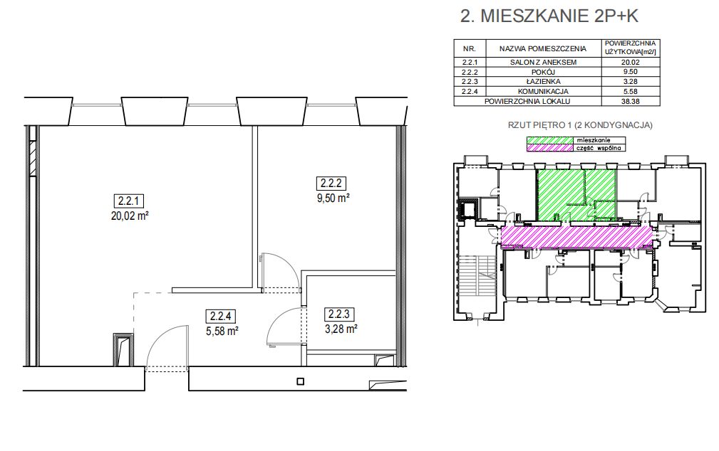 38 m2, drugie piętro, wys. 3.20m