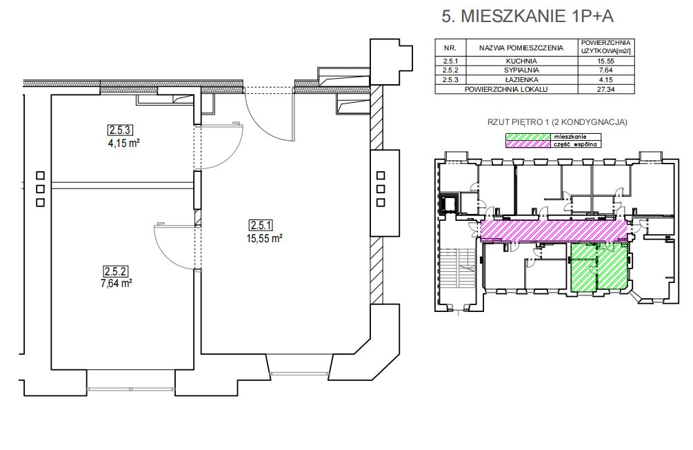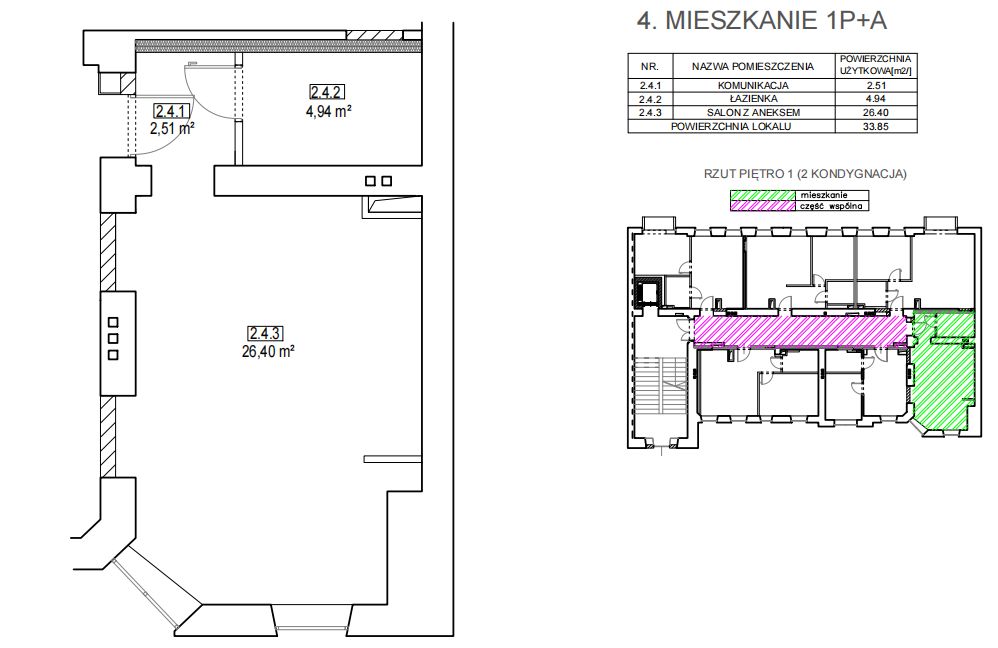 34 m2, pierwsze piętro, wys. 3.30m